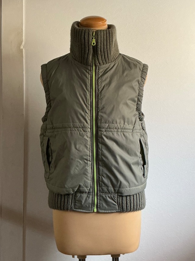 中綿なナイロンベストです あったかさはもちろん、配色とシルエットもグッド ジャストめでどうぞ size:M 着丈:50cm 身幅:50cm 肩幅:40cm 素材:nylon100% Instagramはこちら↓ https://www.instagram.com/hitoe_old_clothing